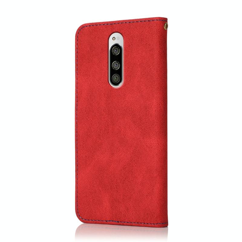 Θήκη τηλεφώνου δερμάτινη με διπλή ραφή για Sony Xperia 1 (Κόκκινο Μπλε)