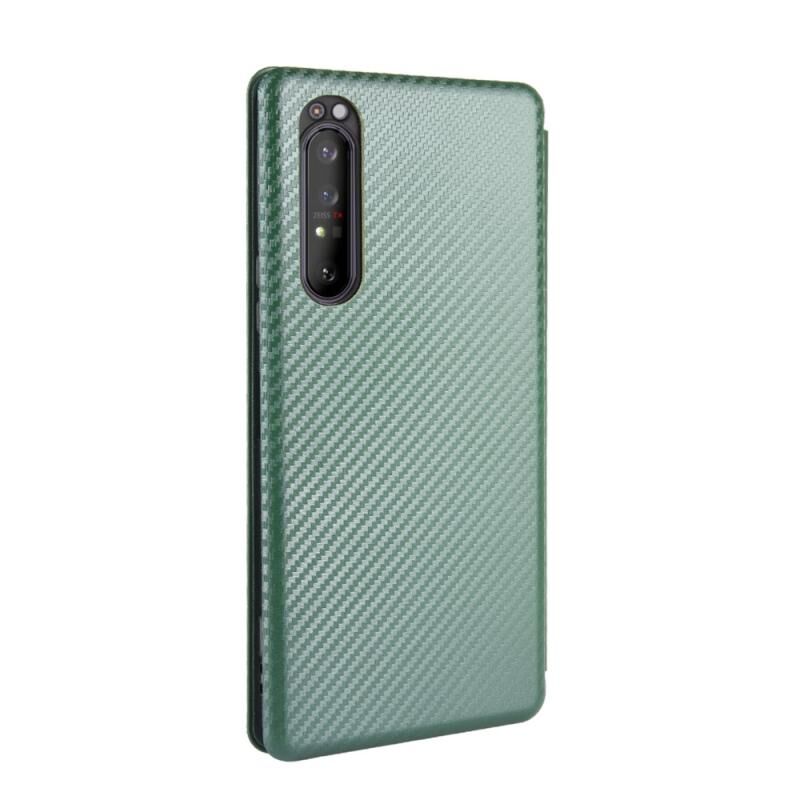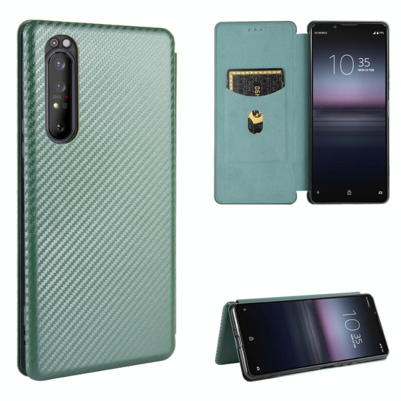 Για Sony Xperia 1 II Carbon Fiber Texture Horizontal Flip TPU + PC + PU Leather Case με υποδοχή κάρτας (πράσινο)
