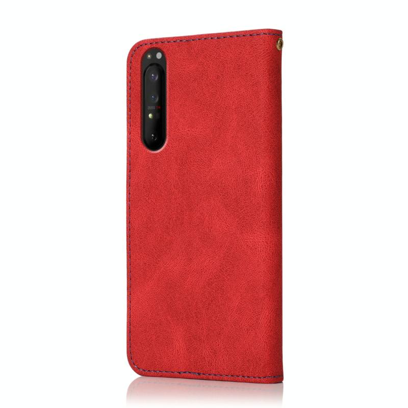 Θήκη τηλεφώνου από δέρμα με διπλή ραφή για Sony Xperia 1 II (Καφέ Κόκκινο)