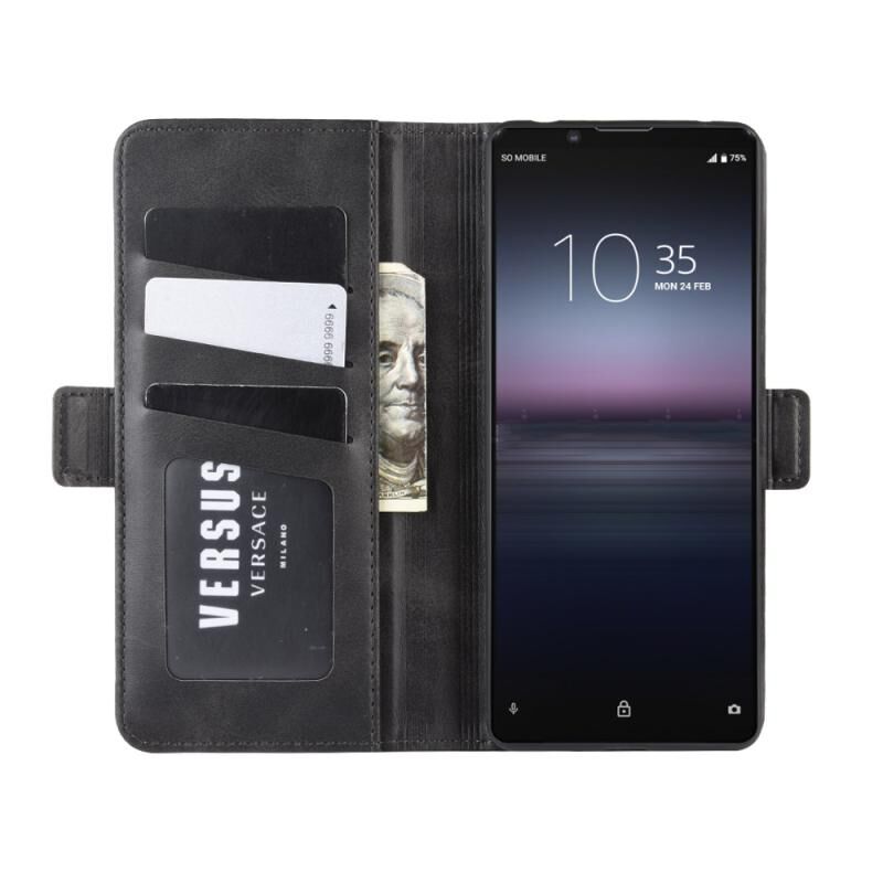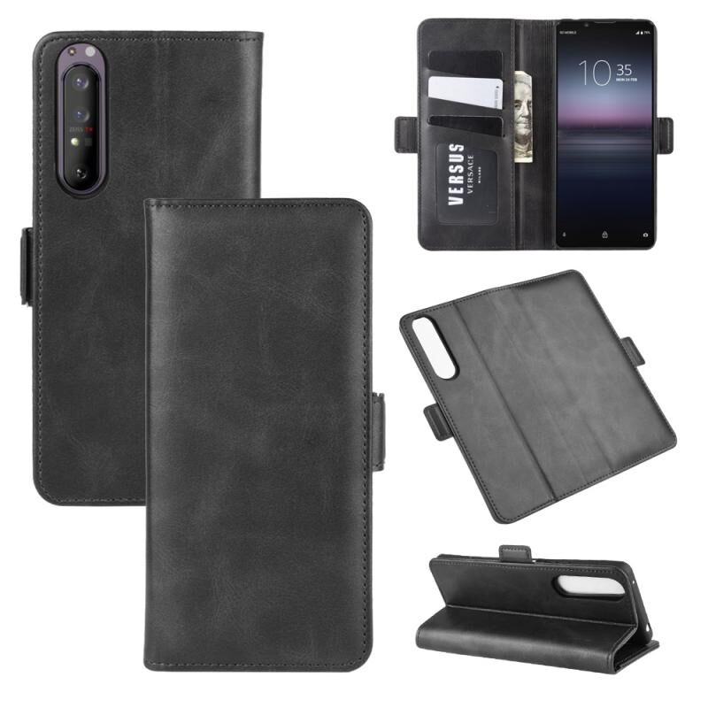Για Sony Xperia 1 II Διπλής όψης μαγνητική αγκράφα οριζόντια Flip δερμάτινη θήκη με θήκη & υποδοχές για κάρτες & πορτοφόλι (Μαύρο)