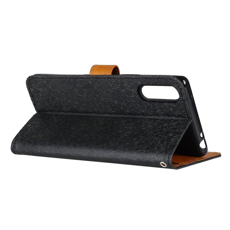 For Sony Xperia 1 II European Floral Embossed Copper Buckle Horizontal Flip PU Leather Case with Holder & Card Slots & Wallet & Photo Frame(Black)