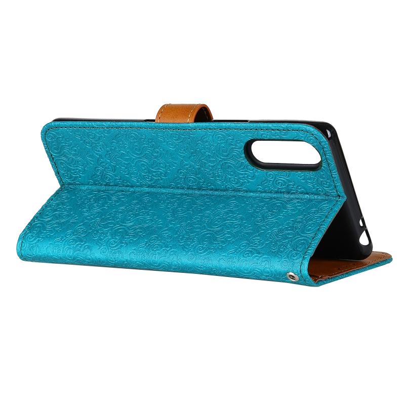 For Sony Xperia 1 II European Floral Embossed Copper Buckle Horizontal Flip PU Leather Case with Holder & Card Slots & Wallet & Photo Frame(Blue)