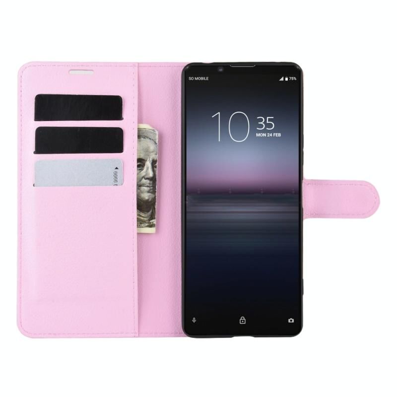 Για Sony Xperia 1 II Litchi Υφή Οριζόντια Flip προστατευτική θήκη με θήκη & υποδοχές για κάρτες & πορτοφόλι (ροζ)