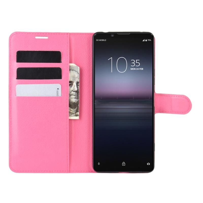 Για Sony Xperia 1 II Litchi Υφή Οριζόντια Flip Προστατευτική θήκη με υποδοχή & υποδοχές για κάρτες & πορτοφόλι (Rose red)