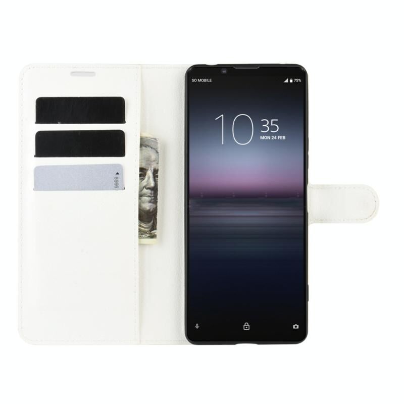 Για Sony Xperia 1 II Litchi Texture Οριζόντια Flip Προστατευτική θήκη με θήκη & υποδοχές για κάρτες & πορτοφόλι (Λευκό)