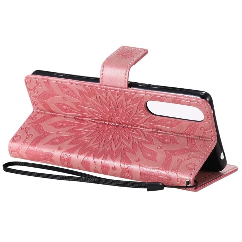 Θήκη για Sony Xperia 1 II με εκτυπωμένο σχέδιο ηλιοτρόπιου, οριζόντια αναδίπλωση, από δερματίνη PU με βάση στήριξης, θήκες για κάρτες, πορτοφόλι & λουρί (Ροζ)