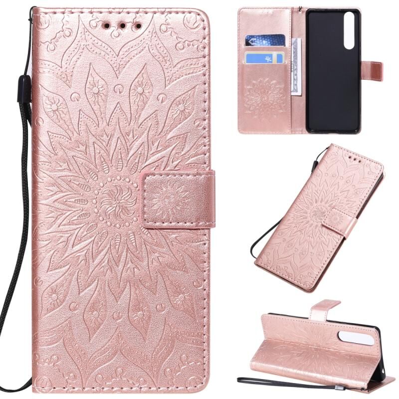 Θήκη για Sony Xperia 1 II με εκτυπωμένο σχέδιο ηλιοτρόπιου, οριζόντια αναδίπλωση, από δερματίνη PU με βάση στήριξης, θήκες για κάρτες, πορτοφόλι & λουρί (Γκρι)