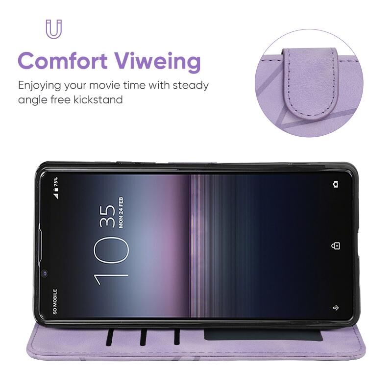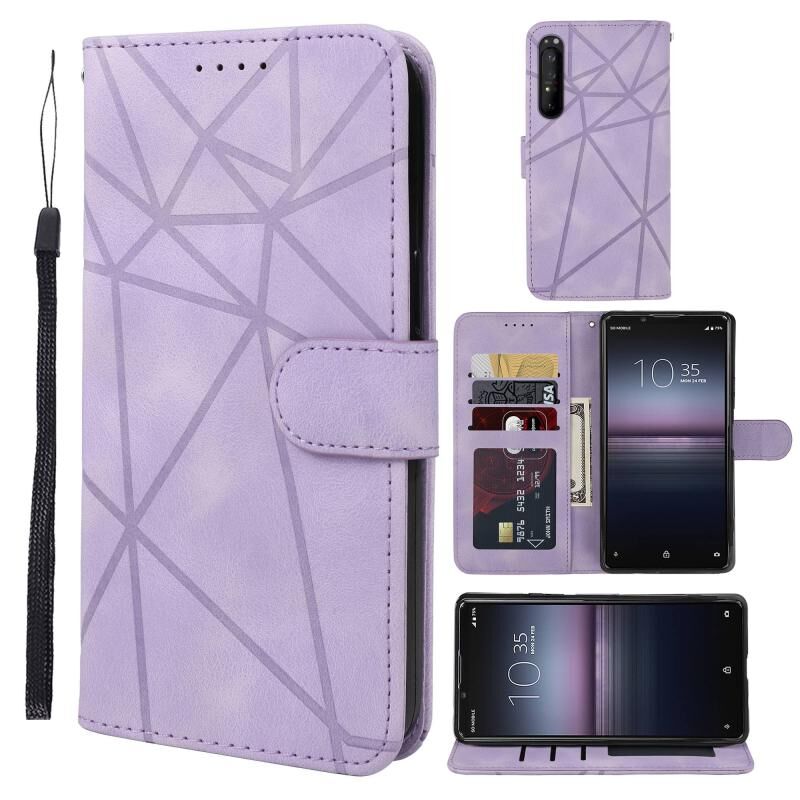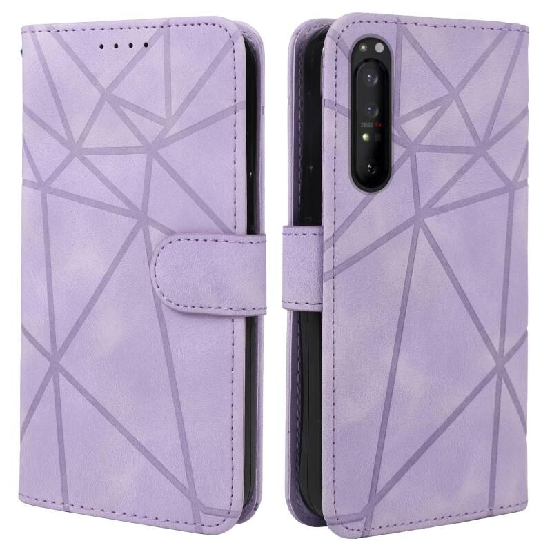 Για το Sony Xperia 1 II Skin Feel Geometric Lines Δερμάτινη θήκη τηλεφώνου (μωβ)