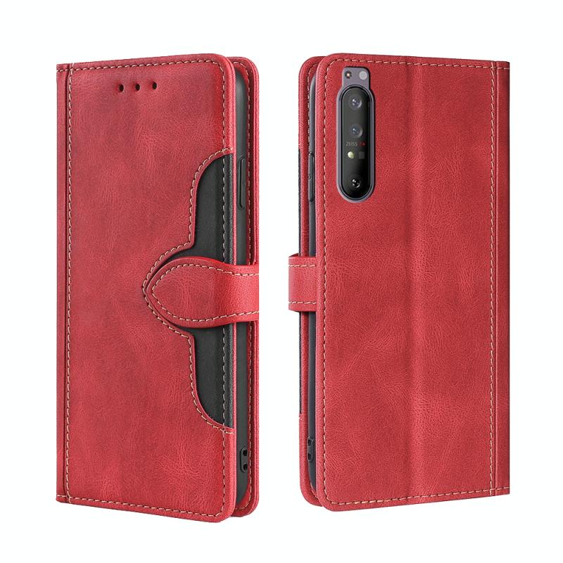 For Sony Xperia 1 II Skin Feel Straw Hat Magnetic Buckle Leather Phone Case(Red)