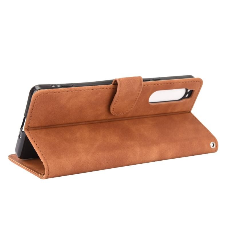 Για το Sony Xperia 1 II Solid Color Skin Feel Magnetic Buckle Horizontal Flip Calf Texture PU Leather Case with Holder & Card Slots & Wallet(Brown)