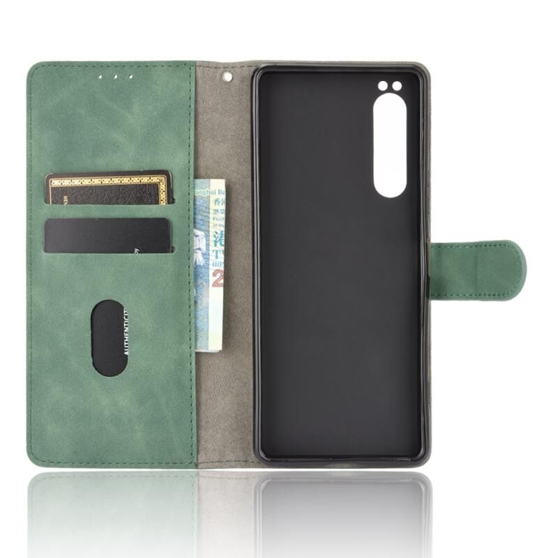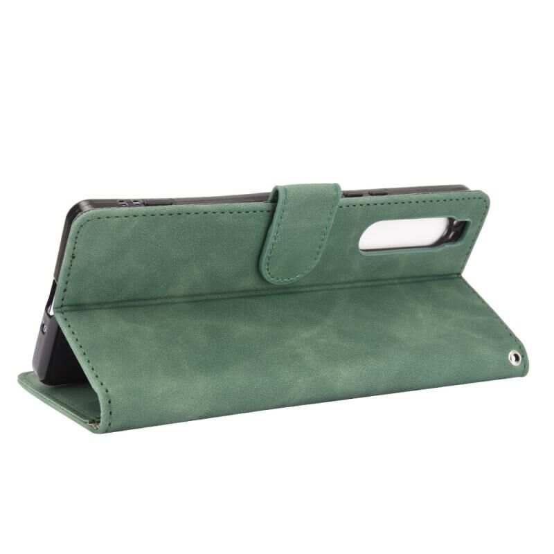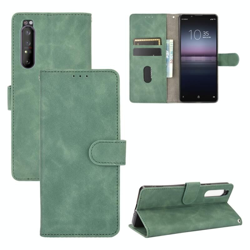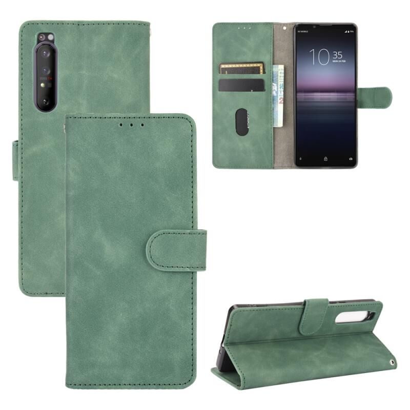 Για Sony Xperia 1 II Solid Color Skin Feel Μαγνητική πόρπη οριζόντια Flip μοσχάρι υφή PU δέρμα υπόθεση με κάτοχο & υποδοχές για κάρτες & πορτοφόλι (πράσινο)