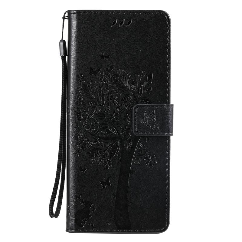 Θήκη για Sony Xperia 1 II με σχέδιο Δέντρου & Γάτας, εκτυπωμένη με θερμοτύπηση, οριζόντια αναδίπλωση, από δερματίνη PU με βάση στήριξης & θήκες για κάρτες & πορτοφόλι & κορδόνι (Χρυσό)