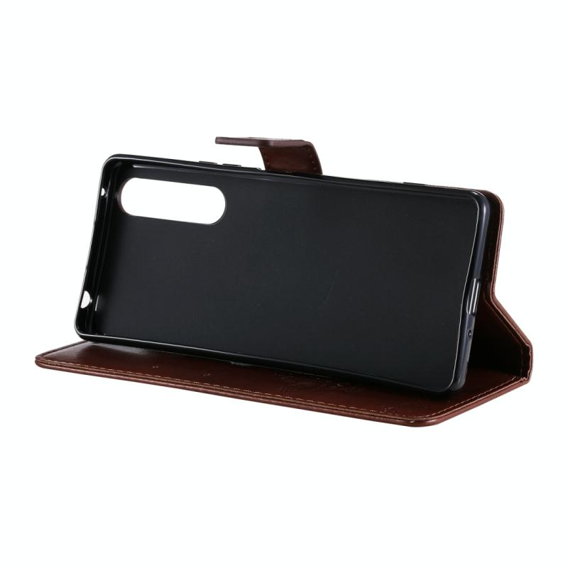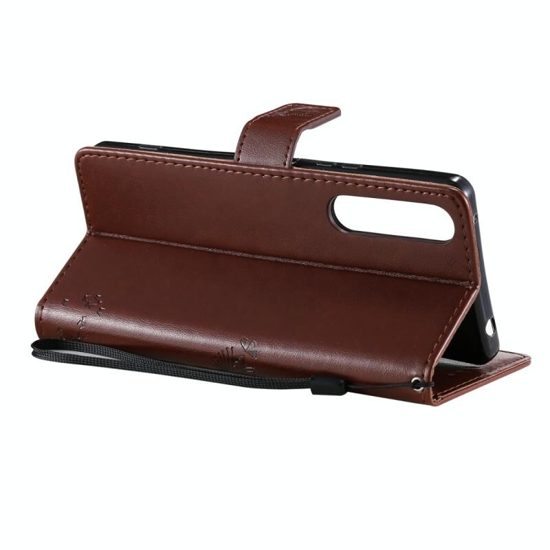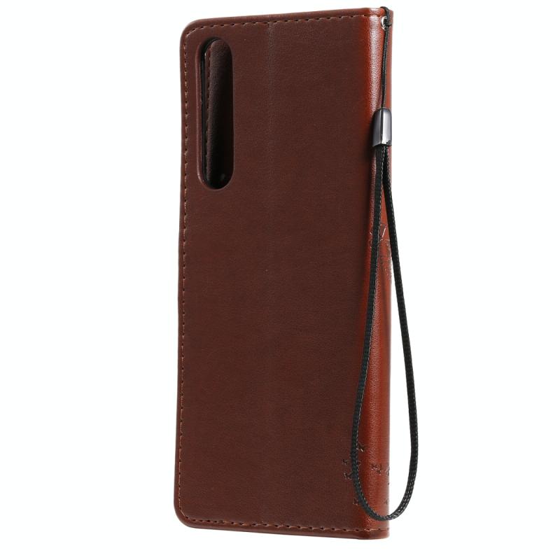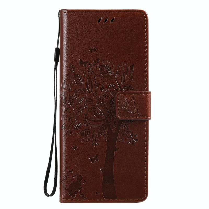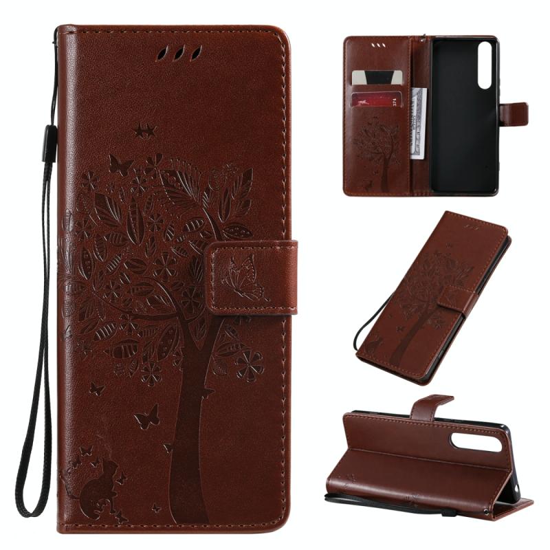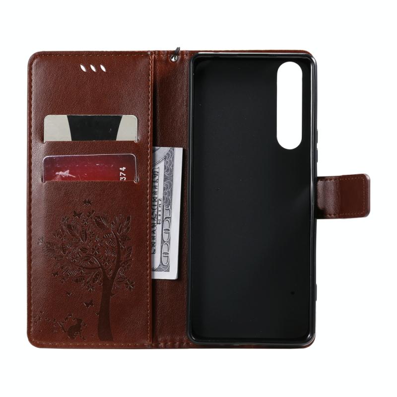 Θήκη για Sony Xperia 1 II με σχέδιο Δέντρου & Γάτας, εκτυπωμένη με θερμοτύπηση, οριζόντια αναδίπλωση, από δερματίνη PU με βάση στήριξης & θήκες για κάρτες & πορτοφόλι & κορδόνι (Χρυσό)
