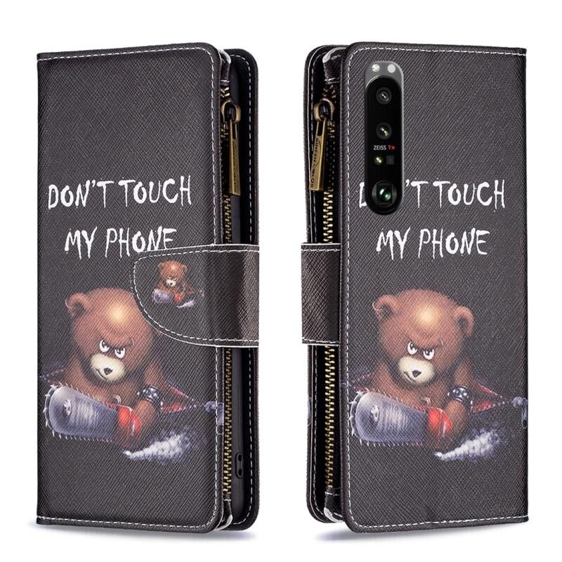 Θήκη τηλεφώνου δέρματινη οριζόντιας αναδίπλωσης με φερμουάρ και σχέδιο πολύχρωμης ζωγραφικής για Sony Xperia 1 III (Αρκούδα)