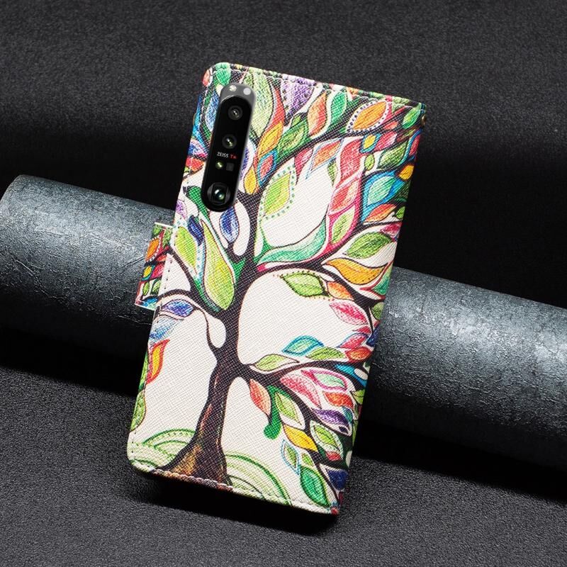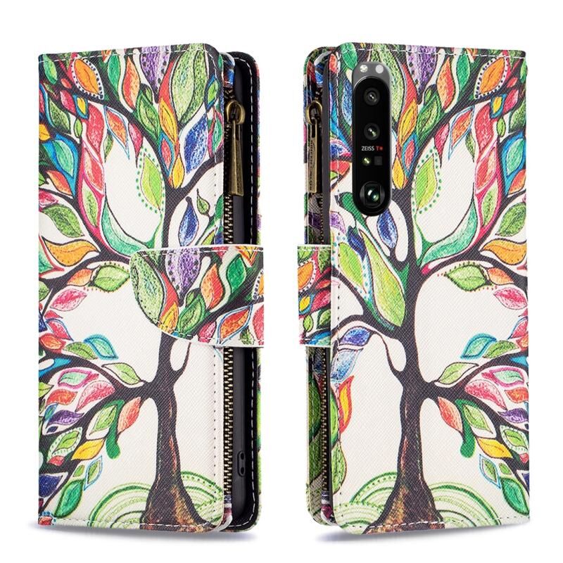 Θήκη δέρματος οριζόντιας ανατροπής με φερμουάρ και σχέδιο πολύχρωμης ζωγραφικής για Sony Xperia 1 III (Δέντρο)