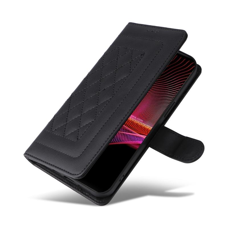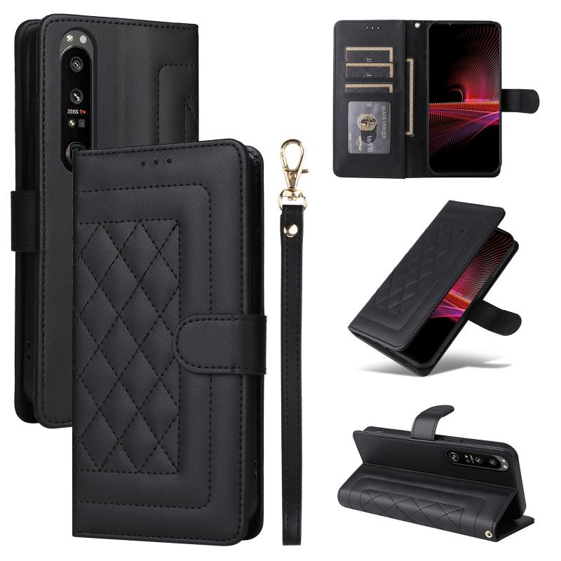 For Sony Xperia 1 III Diamond Lattice Leather Flip Phone Case(Black)