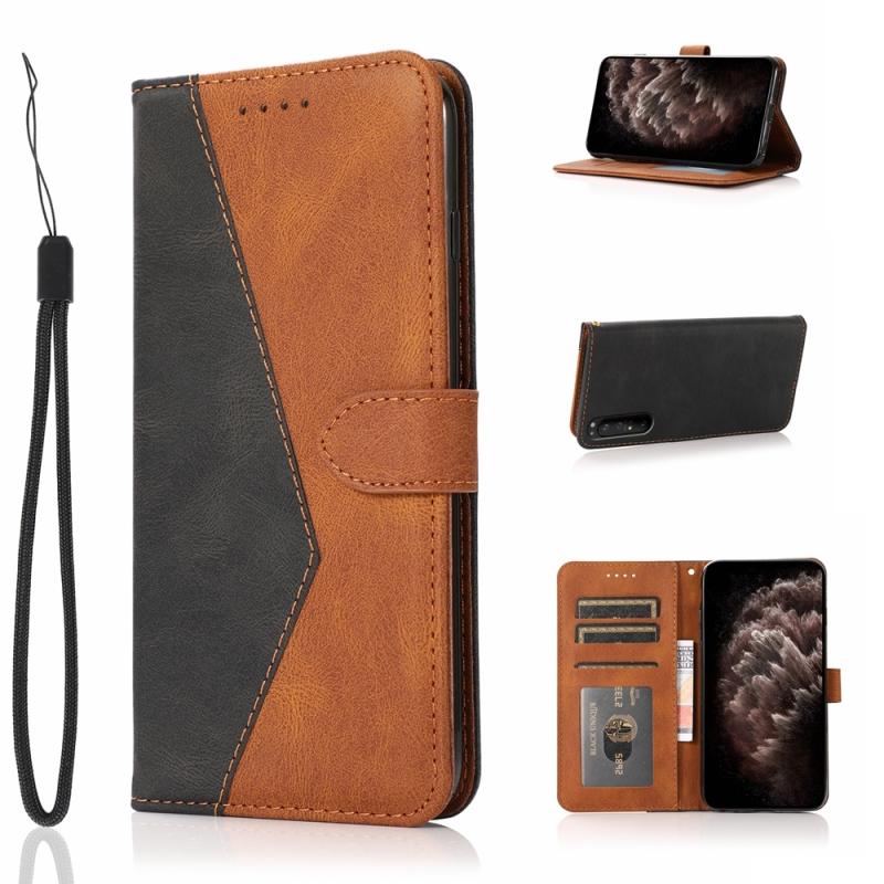 Θήκη τηλεφώνου από δέρμα με διπλή ραφή για Sony Xperia 1 III (Καφέ Κόκκινο)