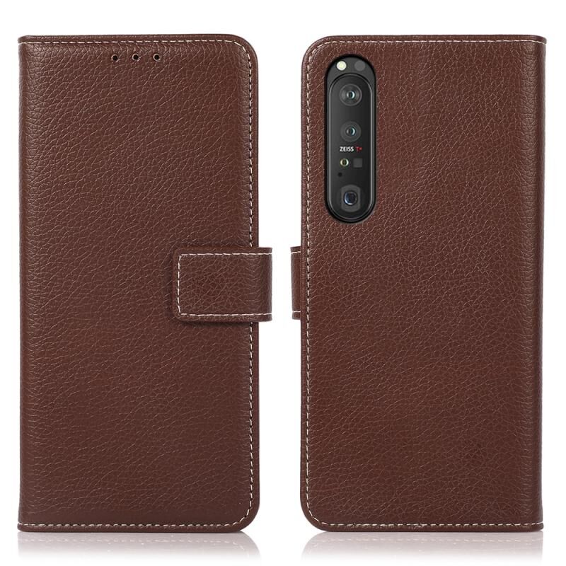 Για Sony Xperia 1 III Litchi Texture PU + TPU Οριζόντια Flip δερμάτινη θήκη με θήκη & υποδοχές καρτών & πορτοφόλι (καφέ)