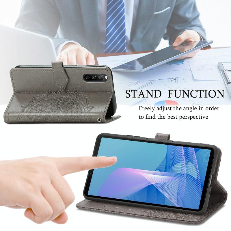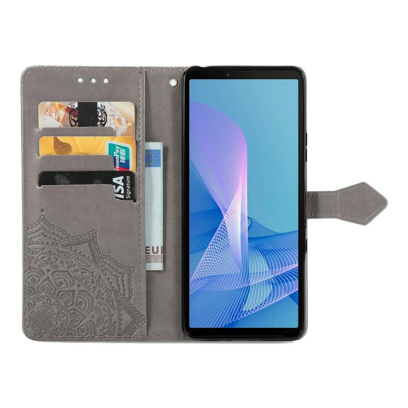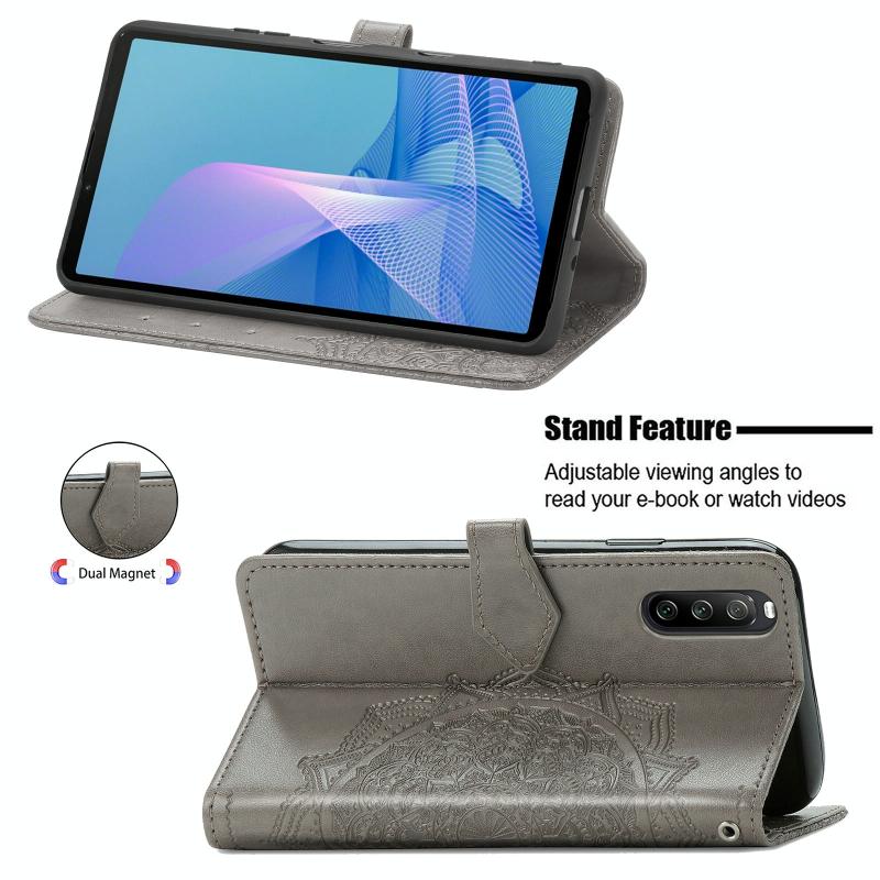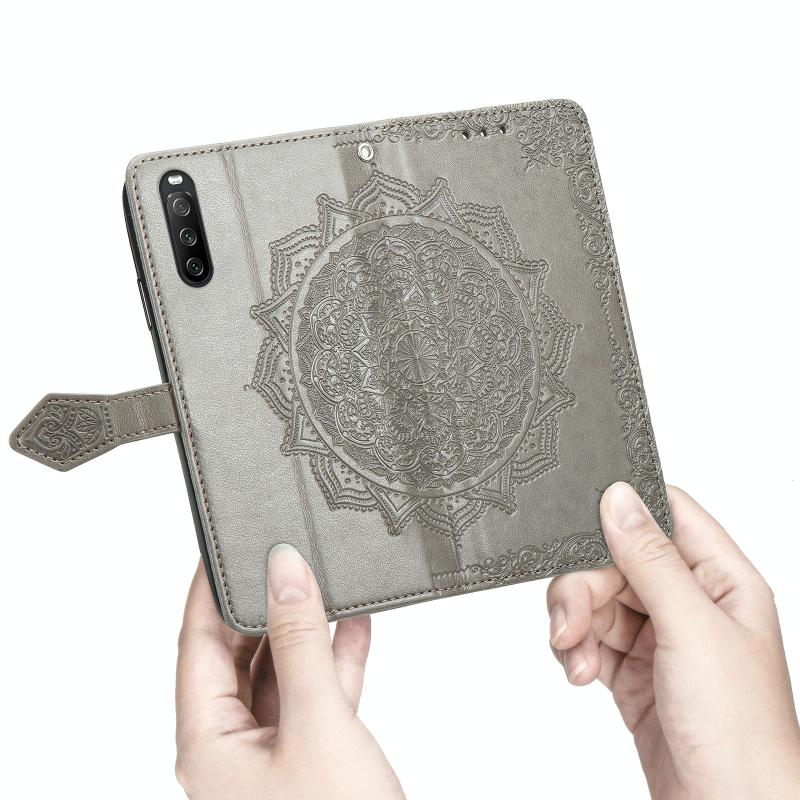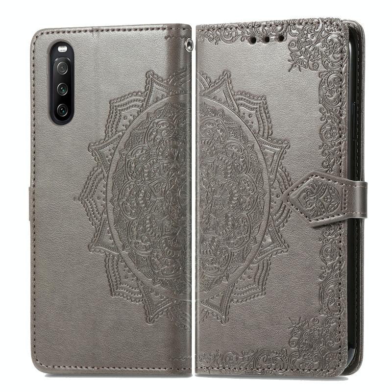 For Sony Xperia 1 III Mandala Embossing Pattern Horizontal Flip Leather Case with Holder & Card Slots & Wallet & Lanyard(Gray)