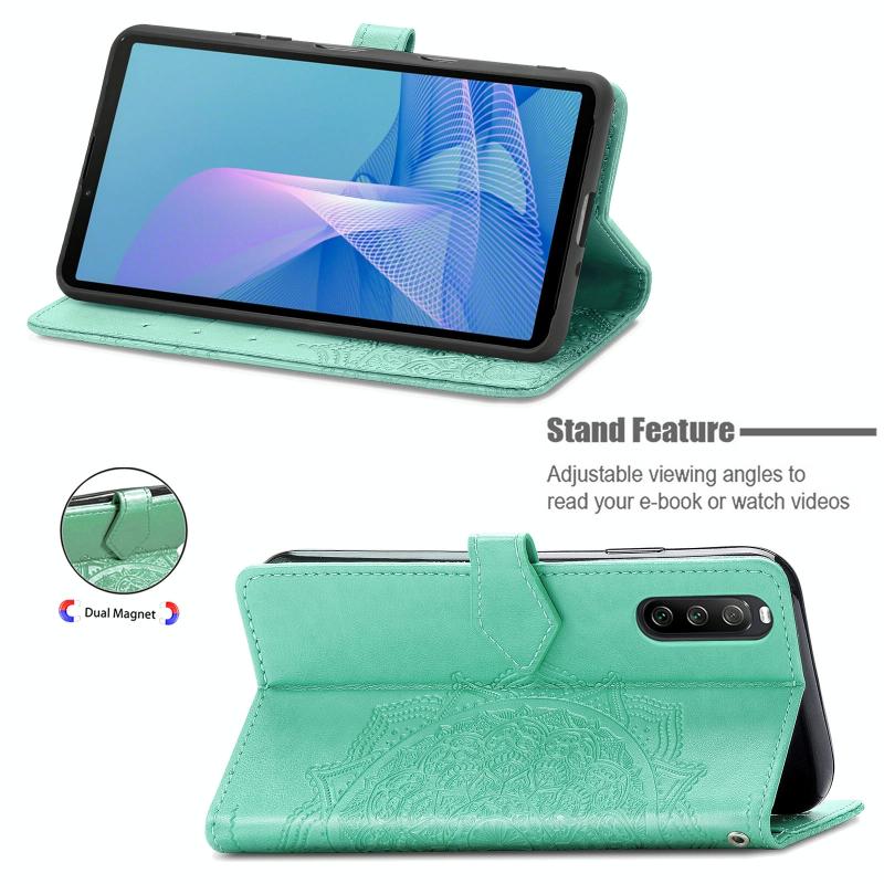 For Sony Xperia 1 III Mandala Embossing Pattern Horizontal Flip Leather Case with Holder & Card Slots & Wallet & Lanyard(Green)