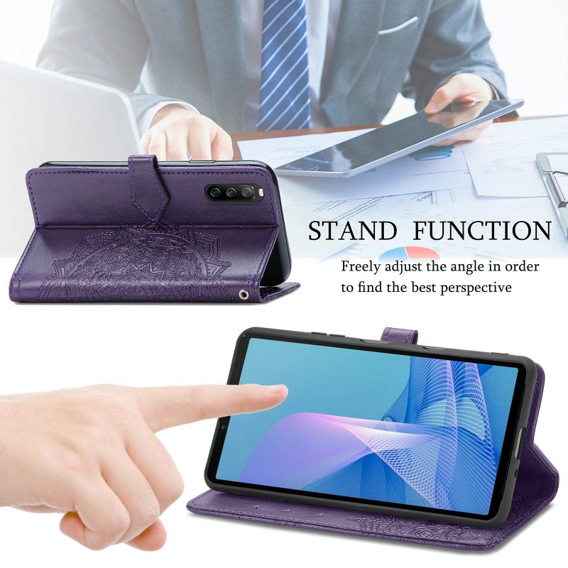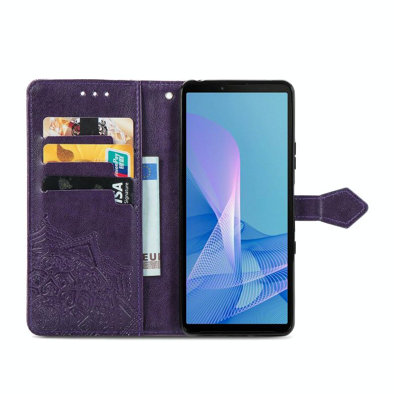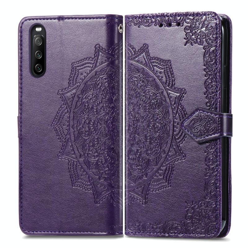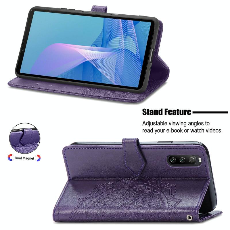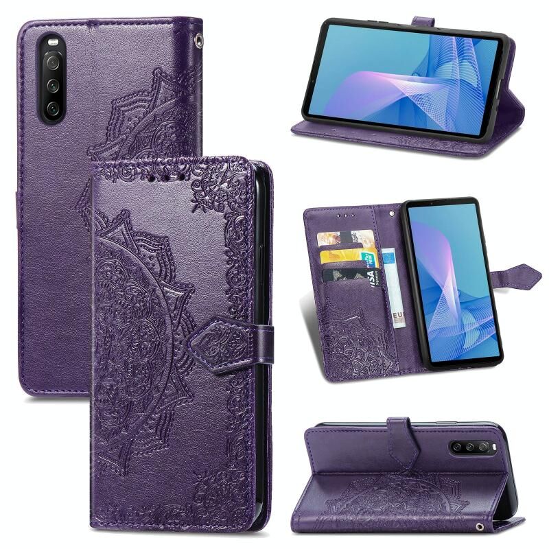 For Sony Xperia 1 III Mandala Embossing Pattern Horizontal Flip Leather Case with Holder & Card Slots & Wallet & Lanyard(Purple)
