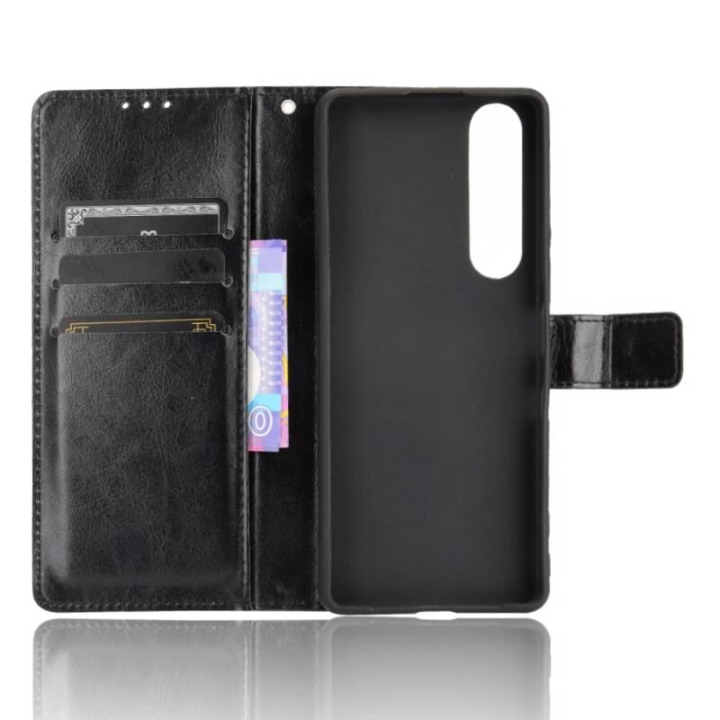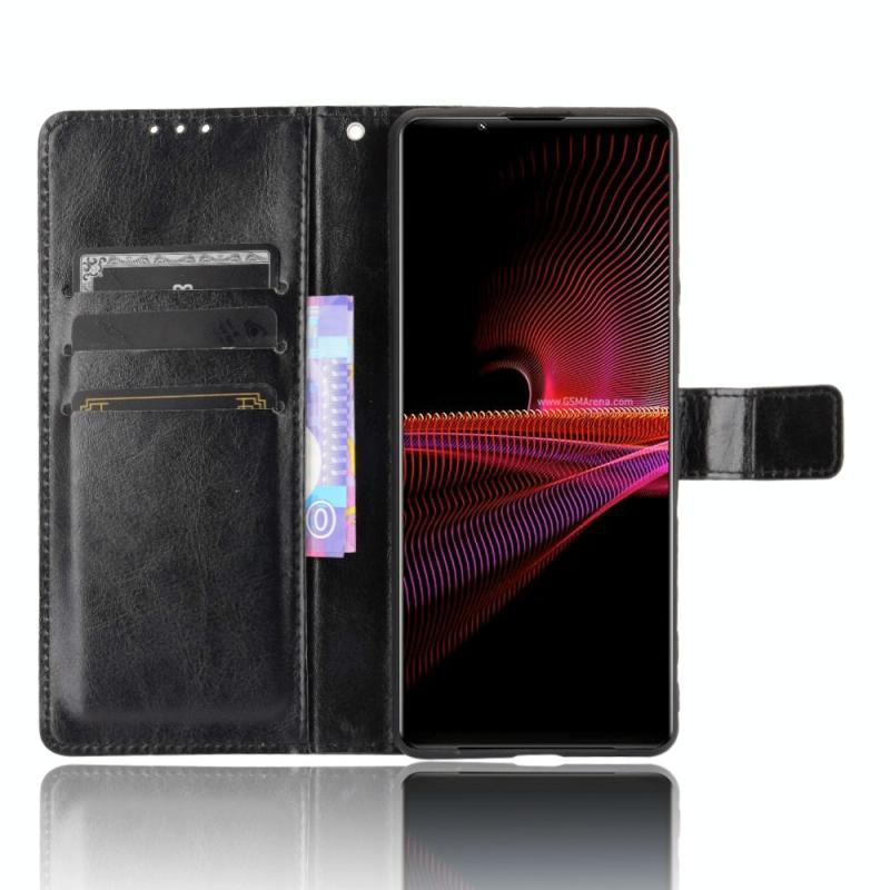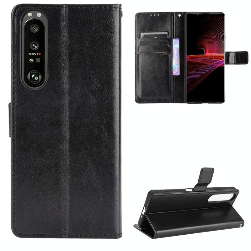 For Sony Xperia 1 III Retro Crazy Horse Texture Horizontal Flip Leather Case with Holder & Card Slots & Photo Frame(Black)
