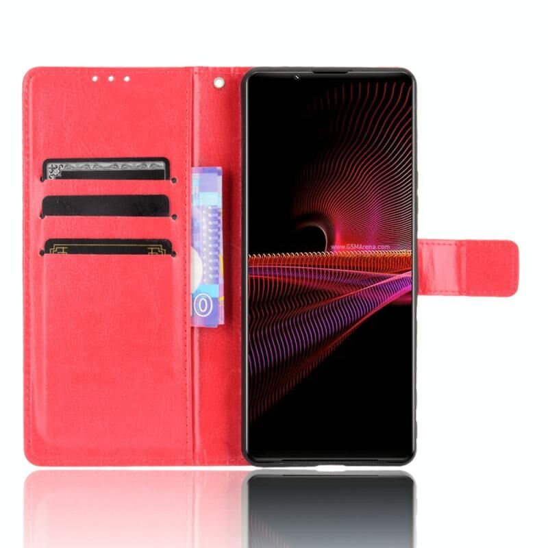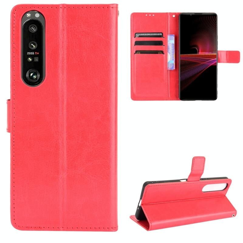 For Sony Xperia 1 III Retro Crazy Horse Texture Horizontal Flip Leather Case with Holder & Card Slots & Photo Frame(Red)