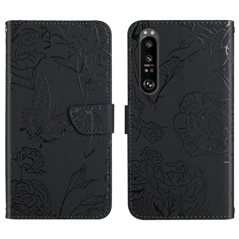 Θήκη τηλεφώνου από δέρμα με ανάγλυφο σχέδιο πεταλούδας και παιώνιας για Sony Xperia 1 III (Κόκκινο)