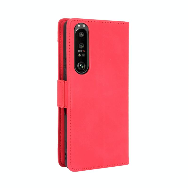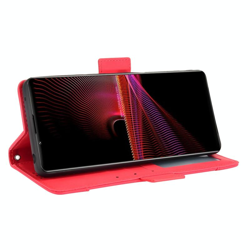 For Sony Xperia 1 III Skin Feel Calf Pattern Horizontal Flip Leather Case with Holder & Card Slots & Photo Frame(Red)