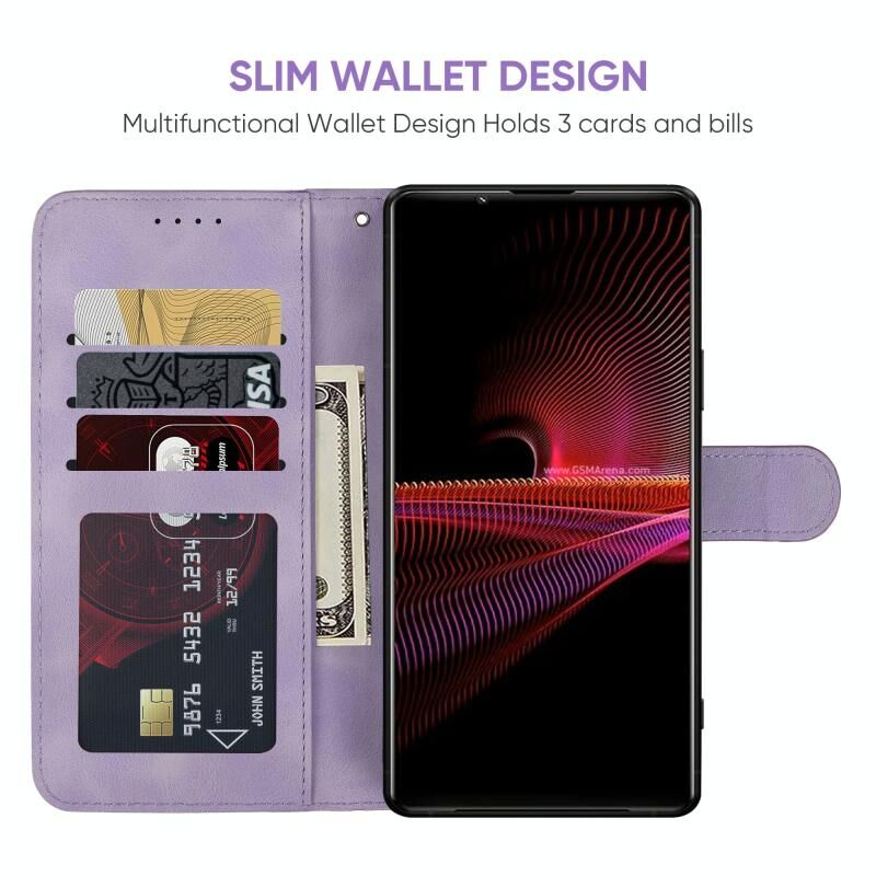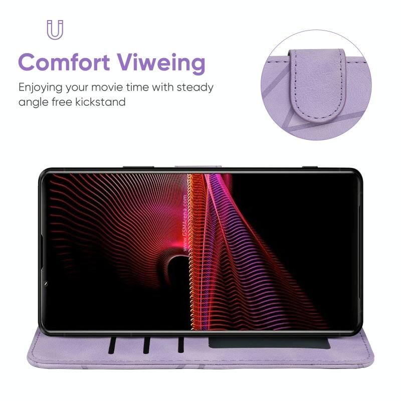 Για το Sony Xperia 1 III Skin Feel Γεωμετρικές γραμμές δερμάτινη θήκη τηλεφώνου (μωβ)