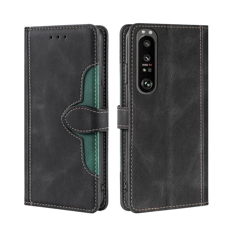 Για το Sony Xperia 1 III Skin Feel Straw Hat Μαγνητική πόρπη οριζόντια Flip PU δερμάτινη θήκη με θήκη & υποδοχές καρτών & πορτοφόλι (Μαύρο)