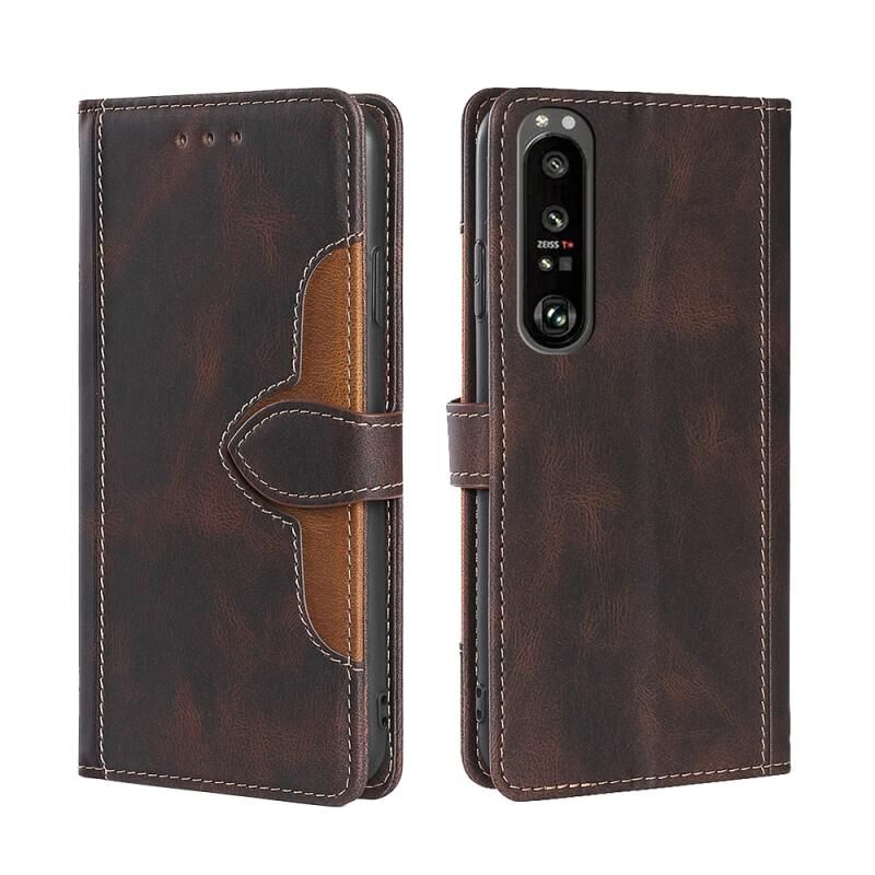 Για το Sony Xperia 1 III Skin Feel Straw Hat Μαγνητική πόρπη οριζόντια Flip PU δερμάτινη θήκη με θήκη & υποδοχές καρτών & πορτοφόλι (καφέ)
