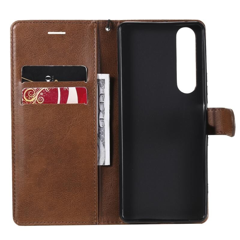 For Sony Xperia 1 III Solid Color Horizontal Flip Protective Leather Case with Holder & Card Slots & Wallet & Photo Frame & Lanyard(Brown)