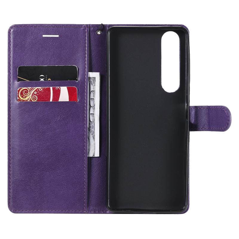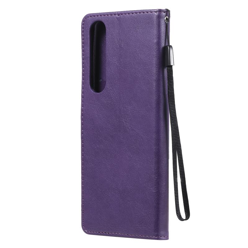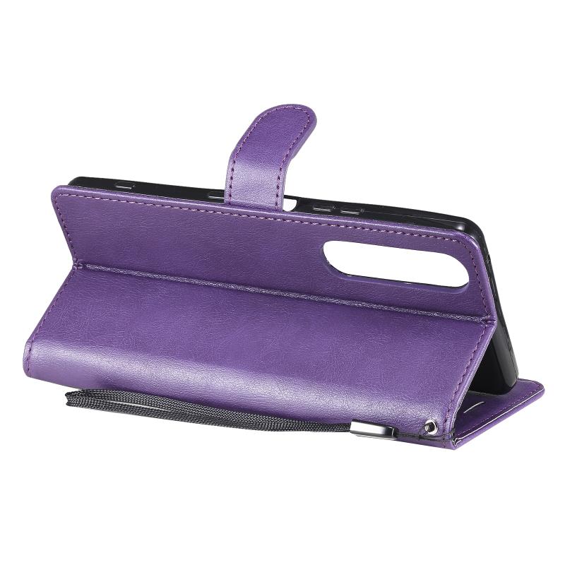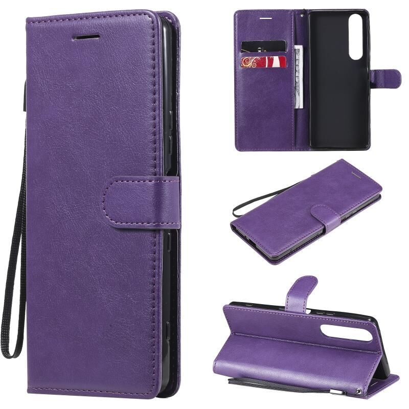 For Sony Xperia 1 III Solid Color Horizontal Flip Protective Leather Case with Holder & Card Slots & Wallet & Photo Frame & Lanyard(Purple)
