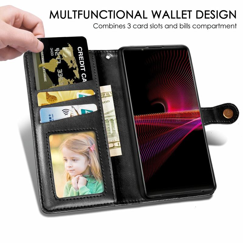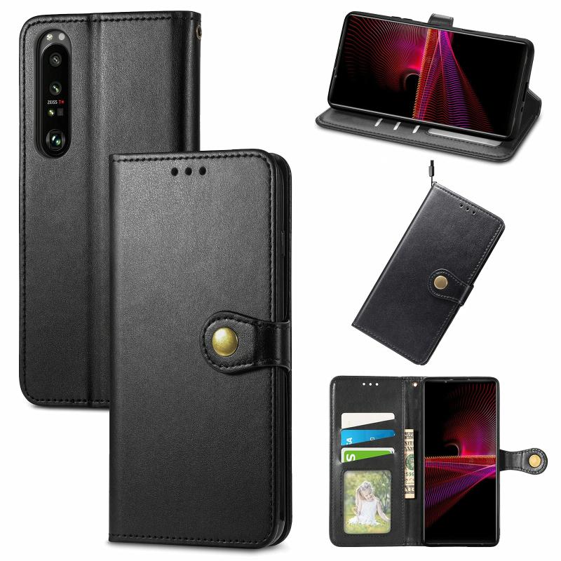 For Sony Xperia 1 III Solid Color Leather Buckle Phone Case with Lanyard & Photo Frame & Card Slot & Wallet & Stand Function(Black)