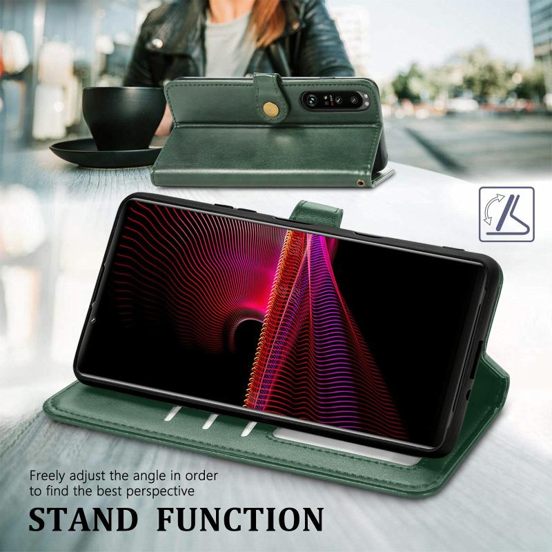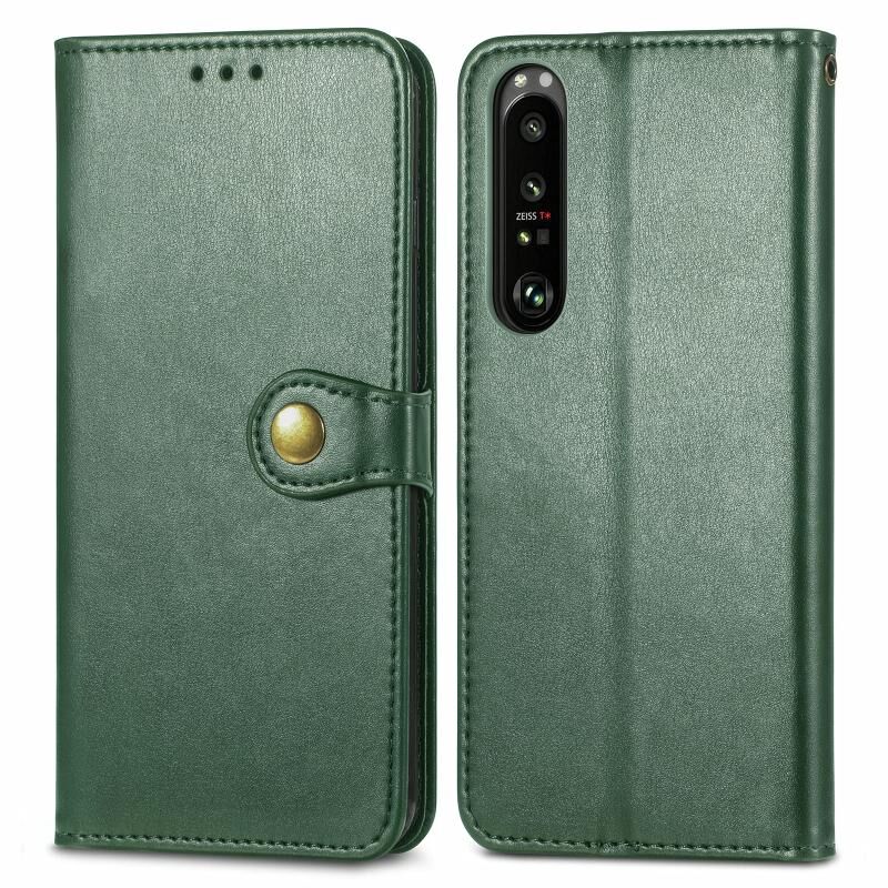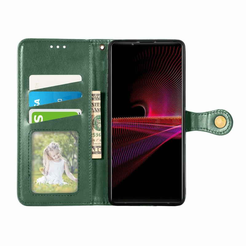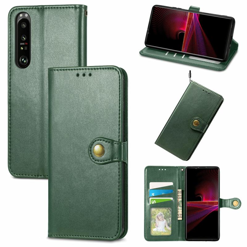 For Sony Xperia 1 III Solid Color Leather Buckle Phone Case with Lanyard & Photo Frame & Card Slot & Wallet & Stand Function(Green)