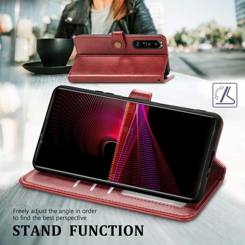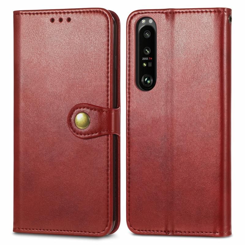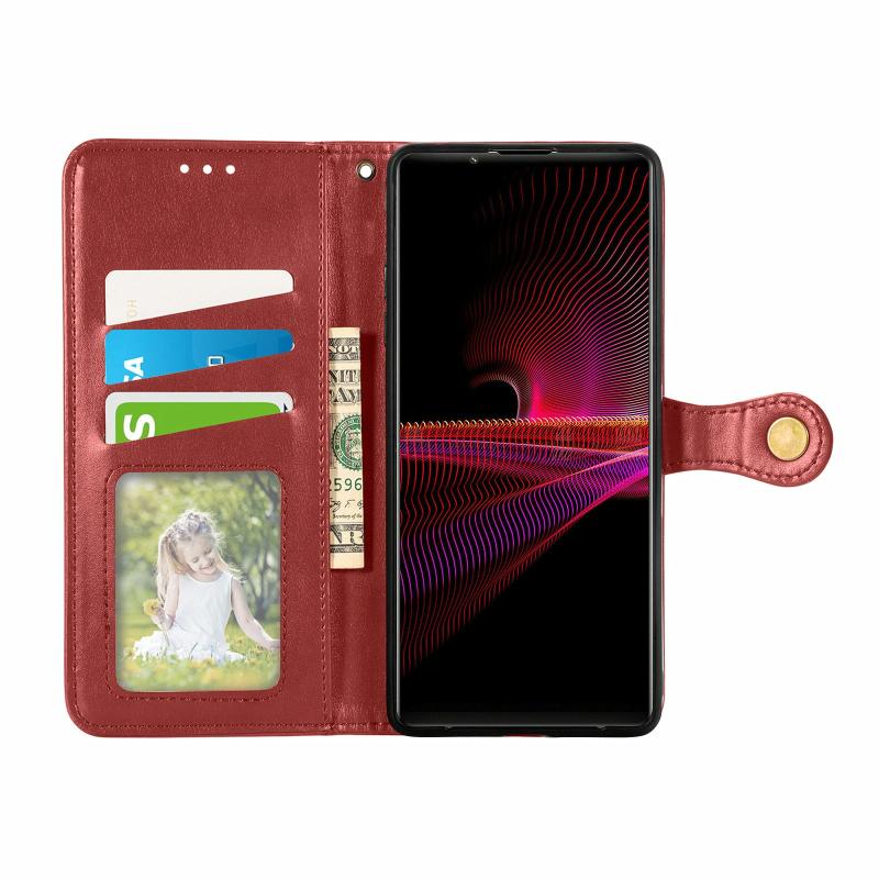 For Sony Xperia 1 III Solid Color Leather Buckle Phone Case with Lanyard & Photo Frame & Card Slot & Wallet & Stand Function(Red)