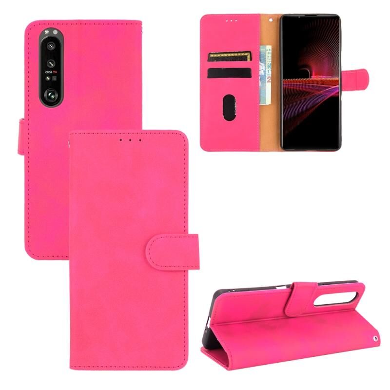 Για το Sony Xperia 1 III Solid Color Skin Feel Magnetic Buckle Horizontal Flip Calf Texture PU Leather Case with Holder & Card Slots & Wallet(Rose Red)