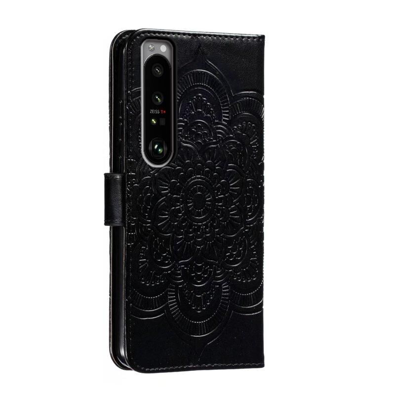 Για Sony Xperia 1 III Sun Mandala ανάγλυφο μοτίβο τηλέφωνο δερμάτινη θήκη (μαύρο)