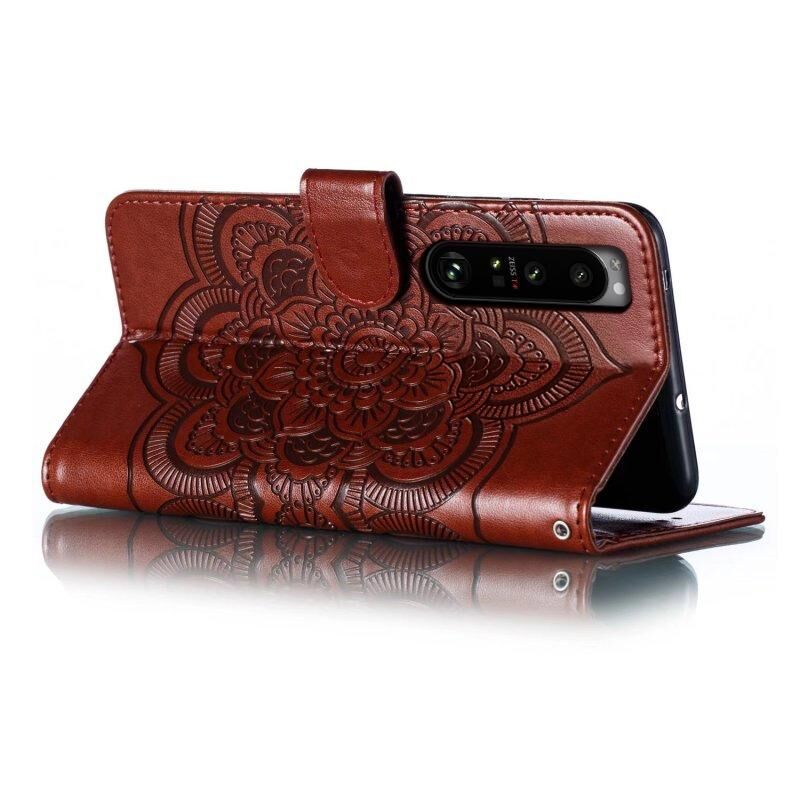 Για Sony Xperia 1 III Sun Mandala ανάγλυφο μοτίβο τηλέφωνο δερμάτινη θήκη (καφέ)