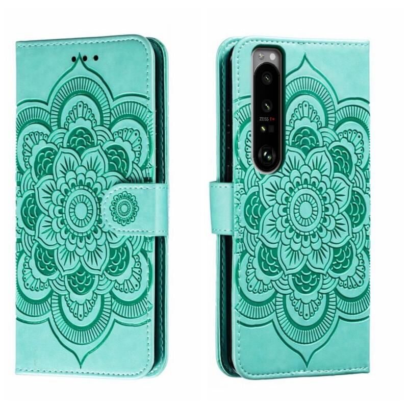 Για Sony Xperia 1 III Sun Mandala ανάγλυφο μοτίβο τηλέφωνο δερμάτινη θήκη (πράσινο)