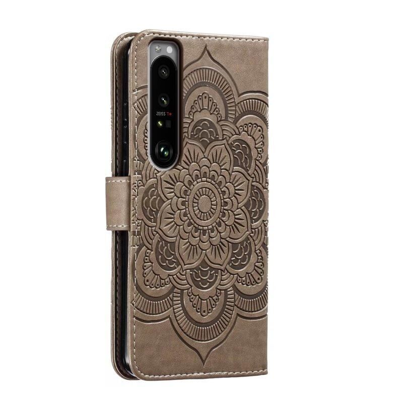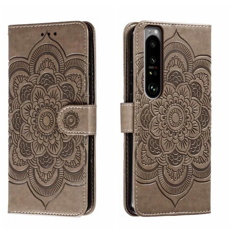 Για Sony Xperia 1 III Sun Mandala ανάγλυφο μοτίβο τηλέφωνο δερμάτινη θήκη (γκρι)