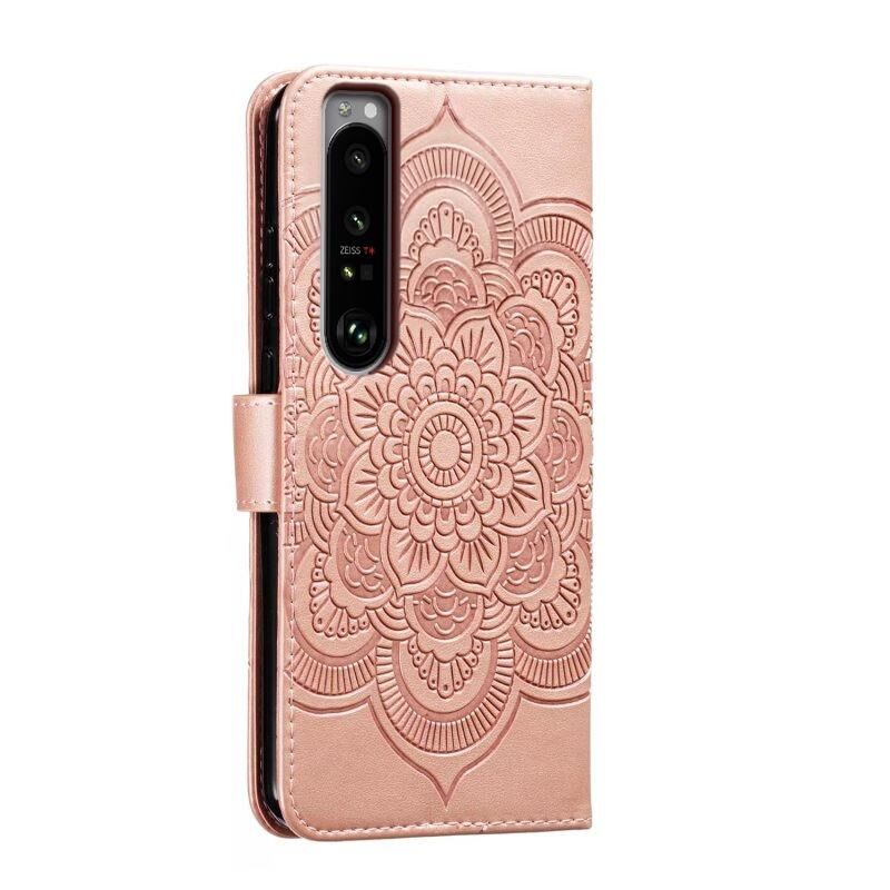 Για Sony Xperia 1 III Sun Mandala ανάγλυφο μοτίβο τηλέφωνο δερμάτινη θήκη (Rose Gold)