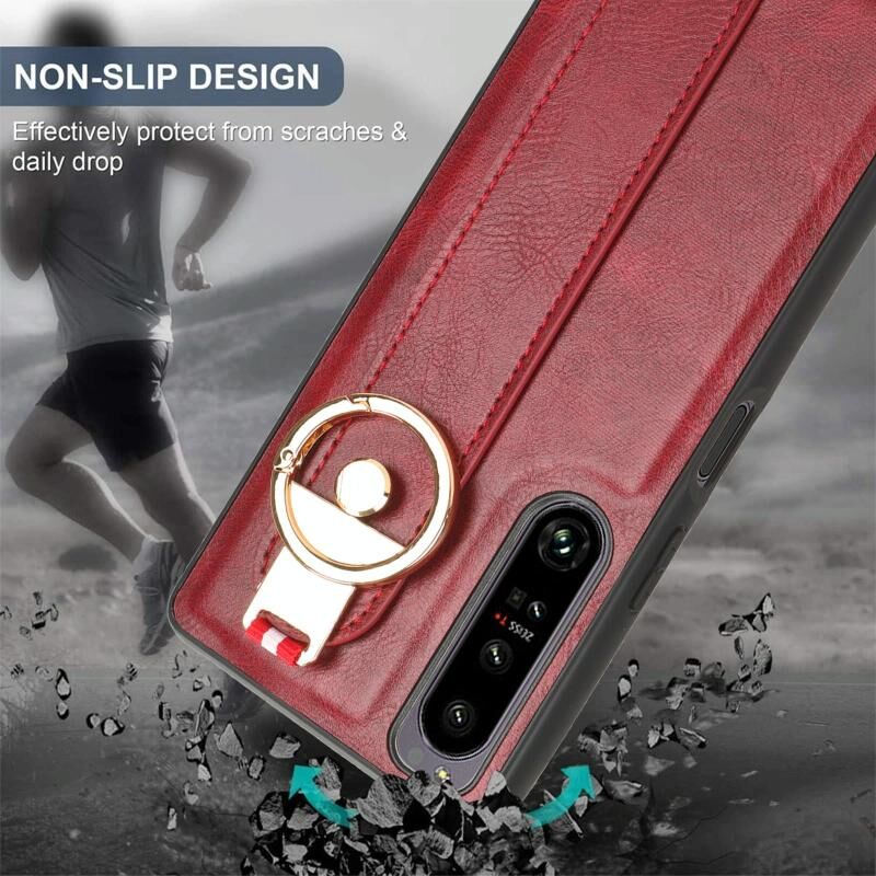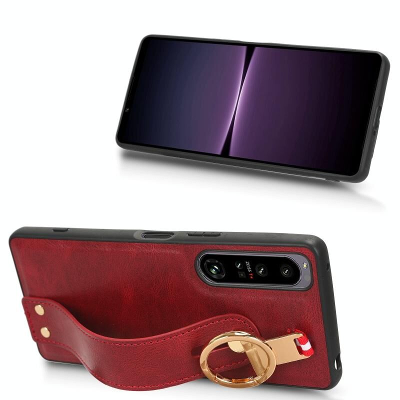 Για Sony Xperia 1 III Wristband δερμάτινη θήκη τηλεφώνου (κόκκινο)