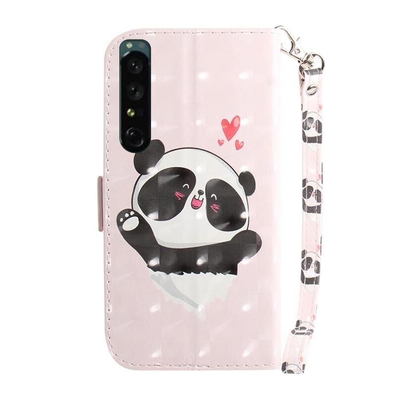 Θήκη τηλεφώνου δέρμα κατακόρυφης αναδίπλωσης με έγχρωμο 3D σχέδιο για Sony Xperia 1 IV (Heart Panda)