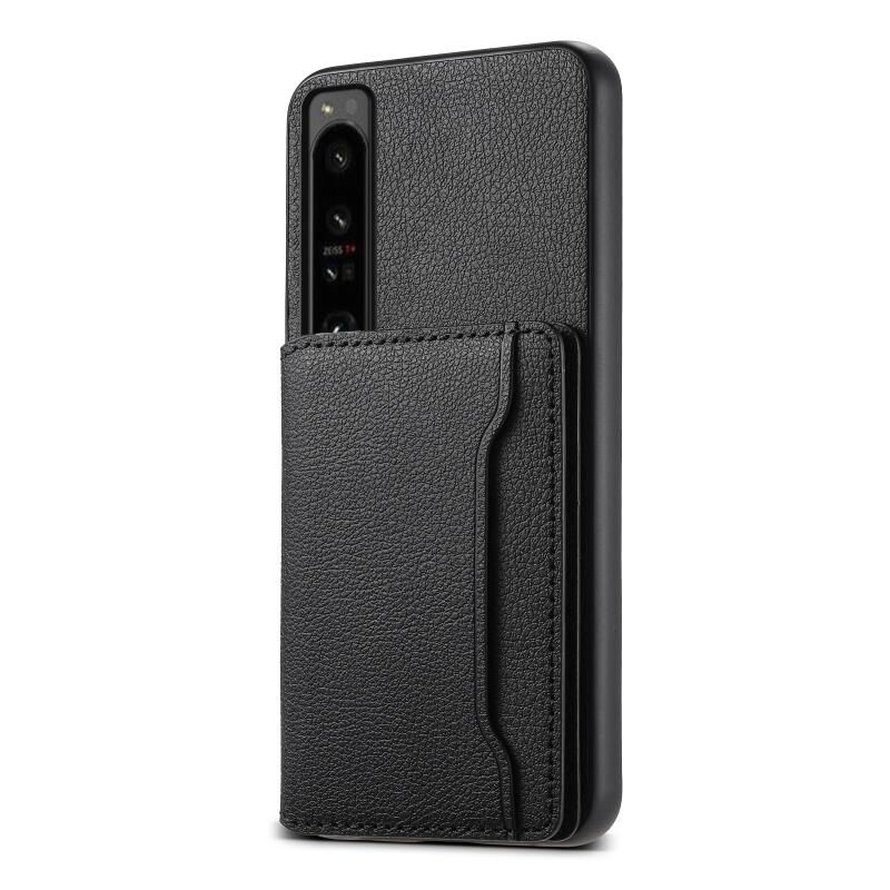 Θήκη κινητού τηλεφώνου με υφή μοσχαρίσιου δέρματος και σχέδιο τσάντας για Sony Xperia 1 IV, πλήρης κάλυψη (Μαύρο)