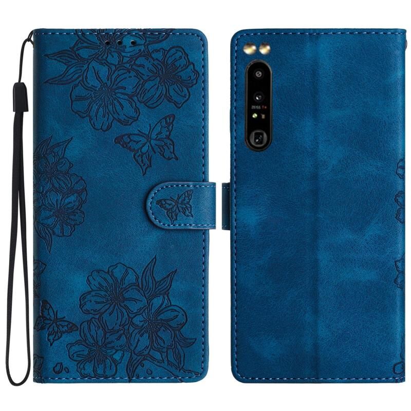 Θήκη τηλεφώνου για Sony Xperia 1 IV Cherry Blossom Butterfly Skin Feel Embossed PU (Κόκκινη)