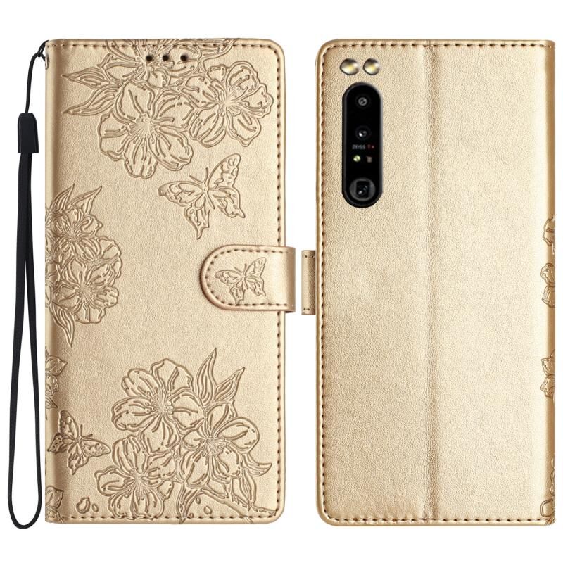 Θήκη τηλεφώνου για Sony Xperia 1 IV Cherry Blossom Butterfly Skin Feel Embossed PU (Κόκκινη)