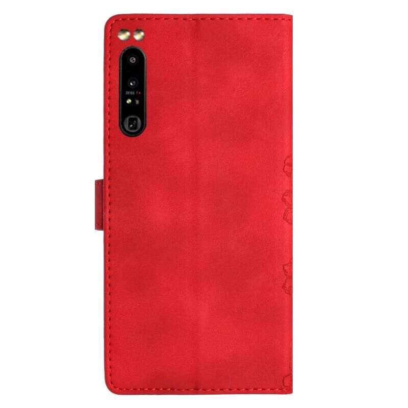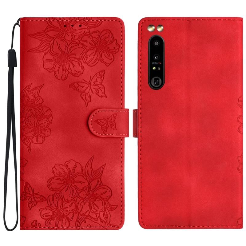Θήκη τηλεφώνου για Sony Xperia 1 IV Cherry Blossom Butterfly Skin Feel Embossed PU (Κόκκινη)