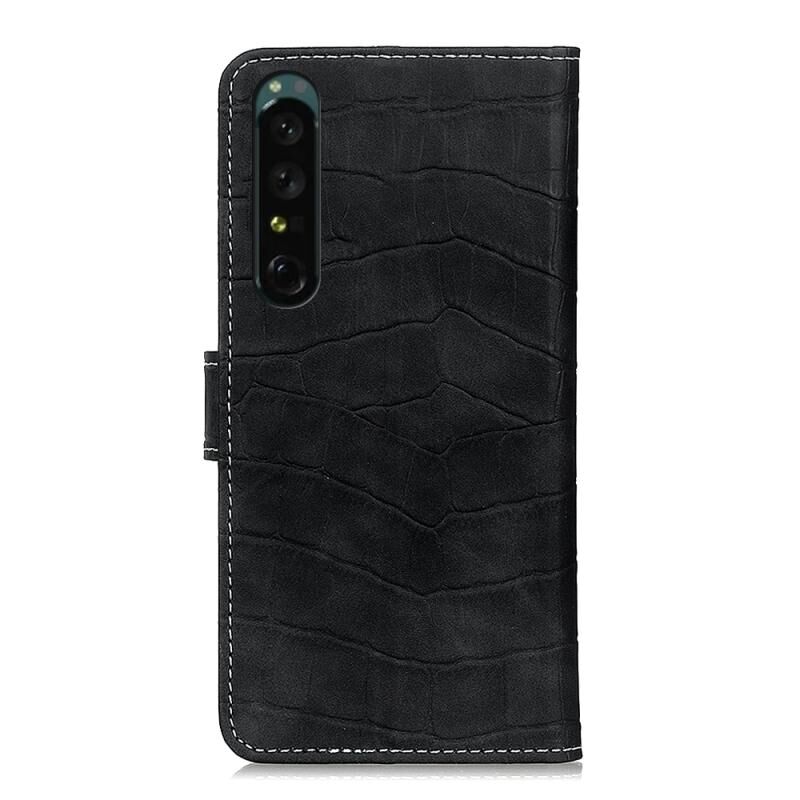 Θήκη τηλεφώνου δέρμα με οριζόντιο άνοιγμα και υφή κροκόδειλου για Sony Xperia 1 IV (Μαύρο)